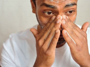 콧방울 옆, 인중, 눈썹 사이를 마사지하면 혈액 순환이 개선되어 도움이 됩니다. 숨 쉬기가 수월해집니다.